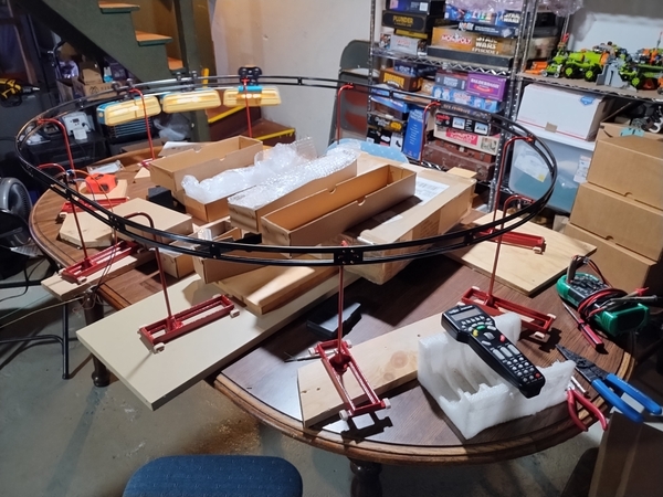 Seeing the monorail in place gave me new ideas! I dreamed of hanging additional benchwork sections from the support structure.